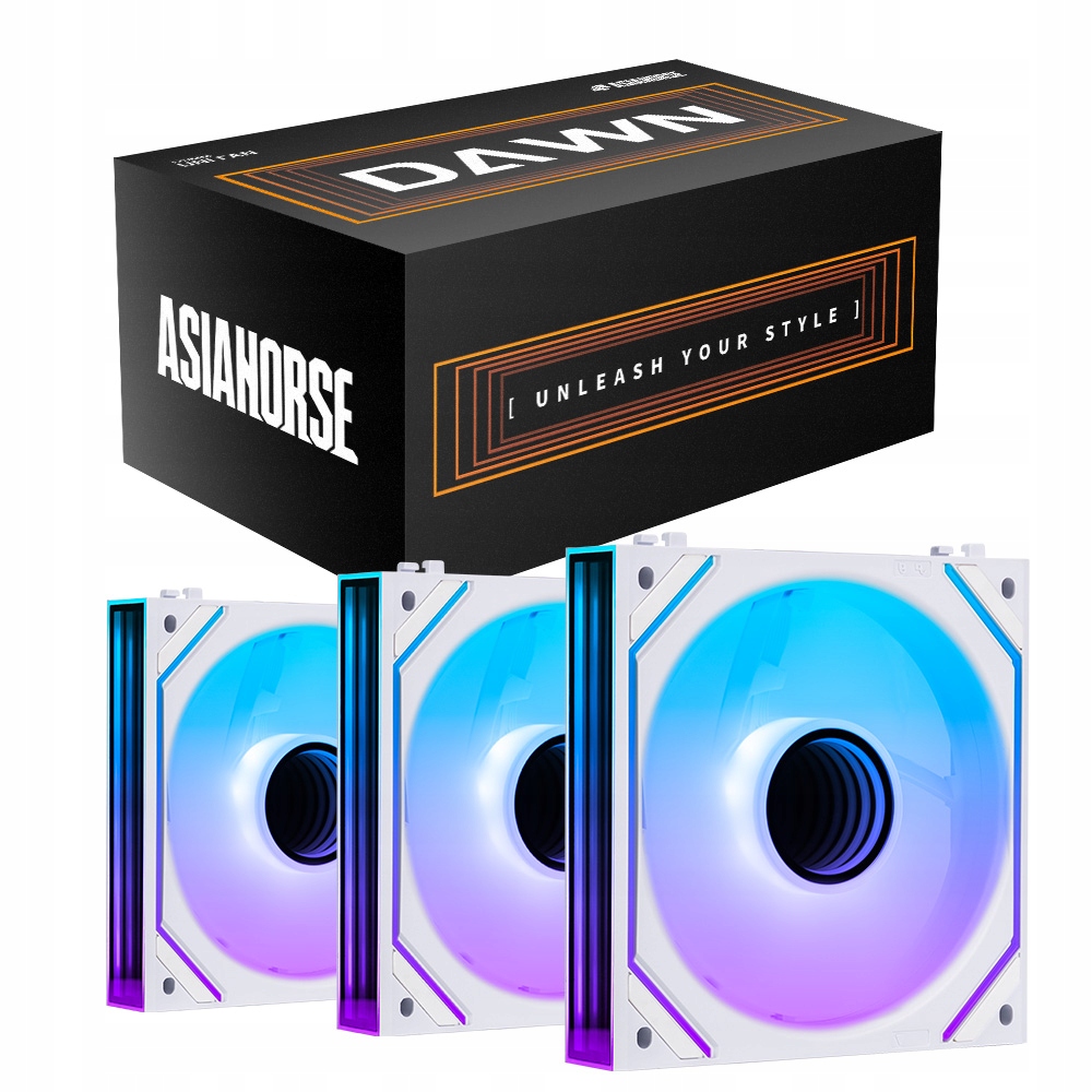 Zestaw 3 wentylatorów 120mm PWM Asiahorse DAWN Pro ARGB Daisy chain Białe