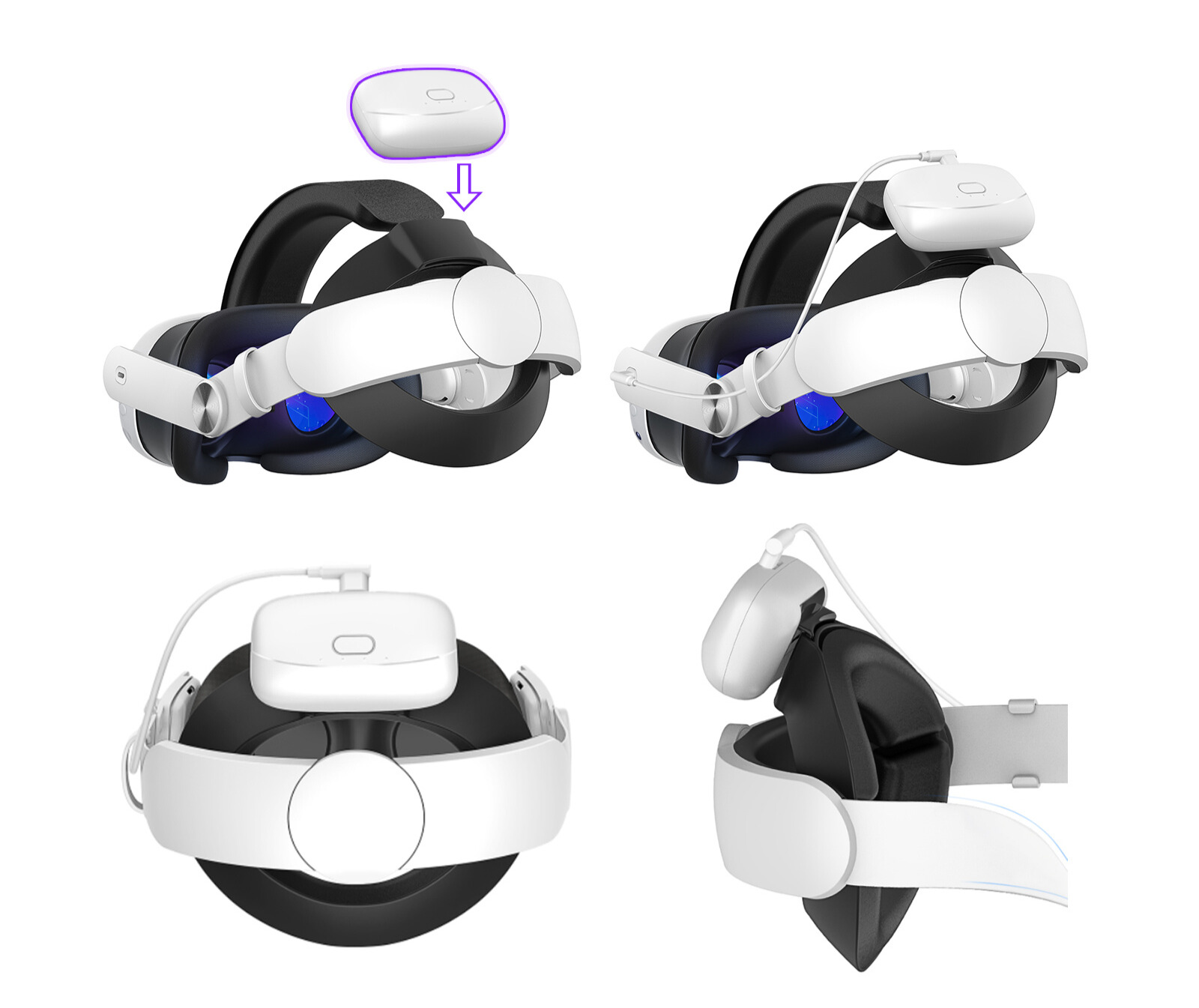Pasek do okularów VR Meta Quest 3 / 3s wyposażony w precyzyjny mechanizm regulacji, który umożliwia łatwe dopasowanie do każdego rozmiaru głowy. Dzięki temu zestaw VR pozostaje stabilny, a nacisk rozkłada się równomiernie, bez uczucia dyskomfortu nawet przy dłuższym użytkowaniu. W tylnej części opaski znajduje się akumulator o pojemności 6000 mAh, który zapewnia nawet do 4 godzin dodatkowego czasu gry. Zintegrowane zasilanie pozwala nie tylko przedłużyć rozgrywkę, ale również działa jak przeciwwaga – poprawiając balans całego zestawu na głowie.