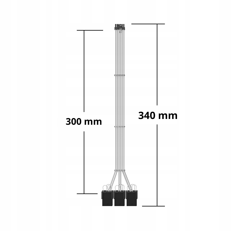 Elastyczna przejściówka w oplocie została wykonana z grubego przewodu 16 AWG co umożliwia bezpieczne zasilanie wydajnych kart graficznych, w zestawie dołączone są 3 grzebienie do estetycznego ułożenia kabli. Adapter kompatybilny jest z wszystkimi kartami ze złączami 12VHPWR