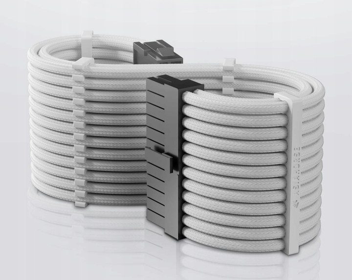 Przedłużacz wykonany jest z wysokiej jakości materiałów, które zapewniają stabilną prace i długą żywotność. Przewody wykonane są z miedźi cynowanej UL1015 18AWG , która jest bardzo wytrzymała i odporna na wysoką temperaturę. Przewody są kompatybilne ze wszystkimi zasilaczami, takimi jak serie RM, RMX RM550x, RM650x, RM750x, RM850x, RM1000x, HX1000, Corsair CX, itp.