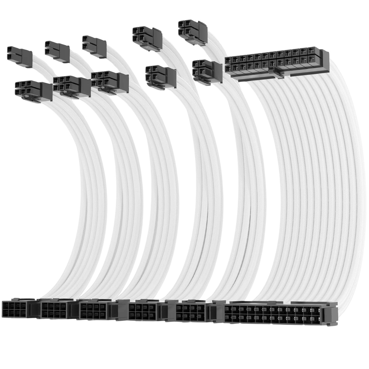 Przedłużacze wykonane są z wysokiej jakości materiałów, które zapewniają stabilną pracę i długą żywotność. Przewody wykonane są z miedźi cynowanej UL1015 16AWG, która jest bardzo wytrzymała i odporna na wysoką temperaturę. Przewody są kompatybilne ze wszystkimi zasilaczami, takimi jak serie RM, RMX, RM550x, RM650x, RM750x, RM850x, RM1000x, HX1000, Corsair CX, itp.