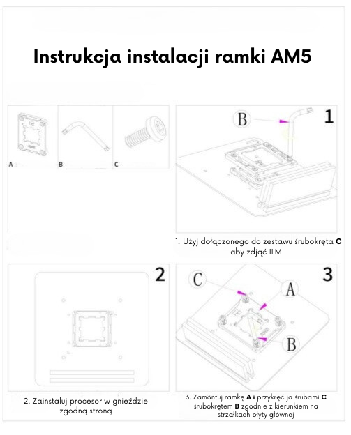 • Zapobiega wyginaniu procesora: Ramka mocno zaciska procesor, zapobiegając jego wyginaniu podczas pracy przy wysokich temperaturach. Dzięki temu procesor jest stabilniejszy i wydajniejszy, a także mniej narażony na awarię.