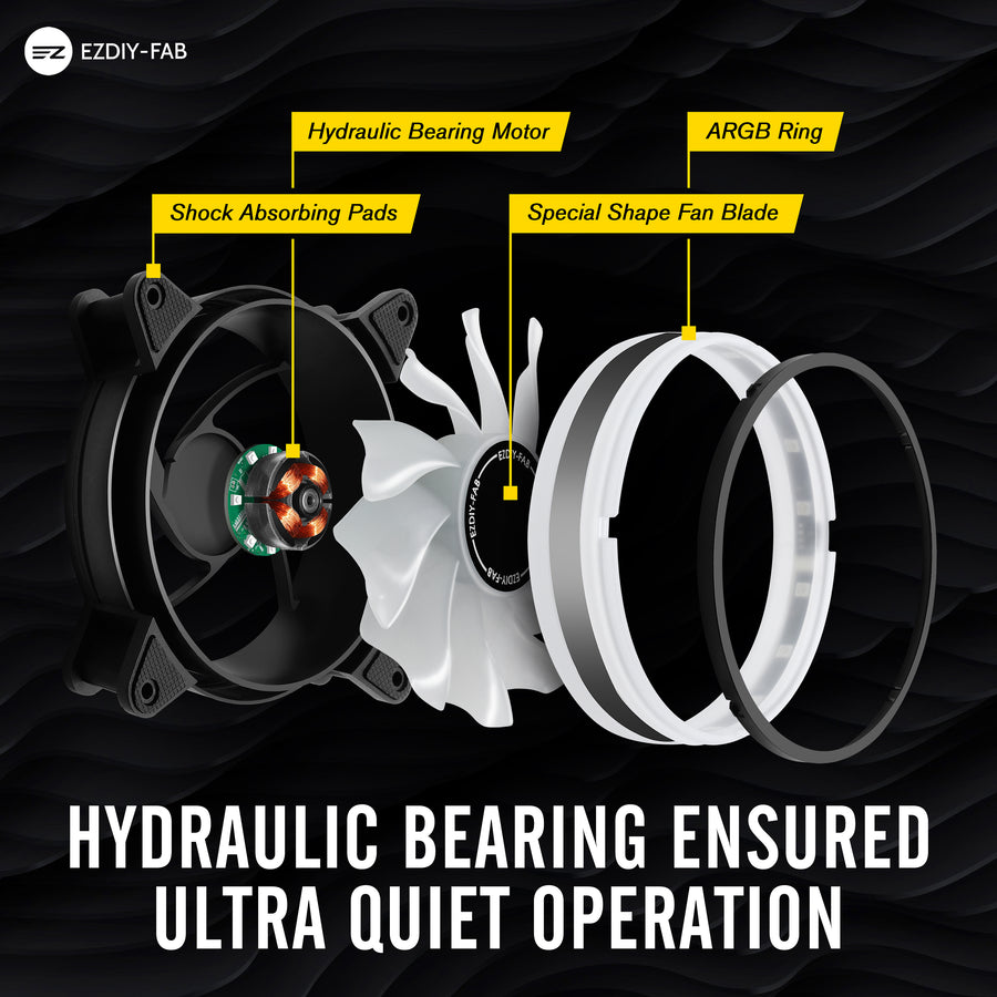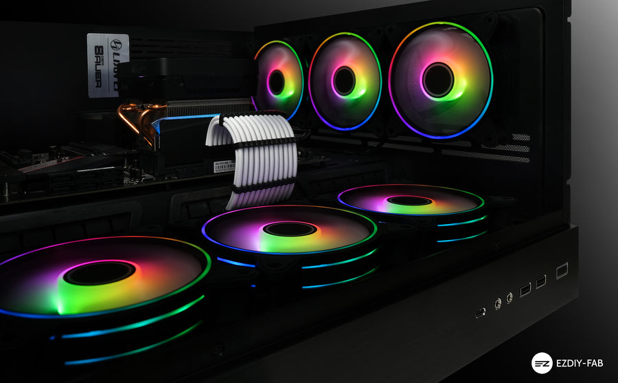 Wentylatory EZDIY Dual Ring zapewniają cichą i wydajną pracę dzięki wysokiej jakości łopatkom oraz gumowym podkładkom, które redukują wibracje. Maksymalny hałas wentylatora wynosi 23.2 dB, co oznacza, że jest praktycznie niesłyszalny w trakcie pracy.