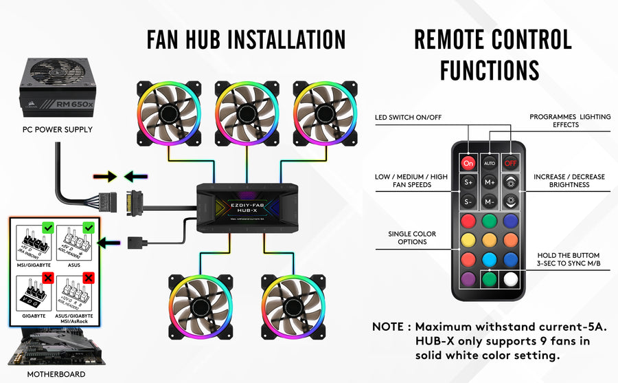 Jeśli komputer posiada złącze ARGB na płycie głównej można  sterować do woli podświetleniem wentylatorów przez program od producenta płyty głównej, natomiast jeśli komputer nie posiada takiego złącza można sterować wentylatorami za pomocą pilota dołączonego do zestawu