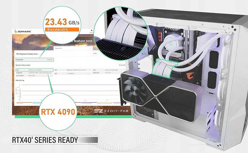 • Wysoka przepustowość: Riser PCIE 4.0 zapewnia wyjątkowo szybki transfer danych między kartą graficzną a płytą główną. Dzięki temu możesz cieszyć się płynnym działaniem swojego komputera