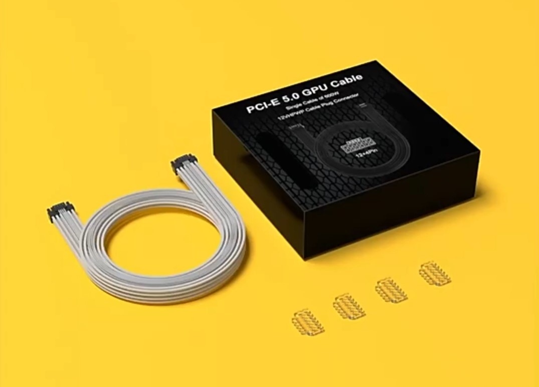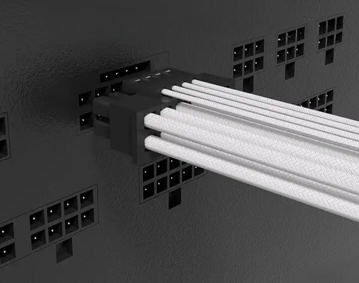 Elastyczna przejściówka w oplocie została wykonana z grubego przewodu 16 AWG co umożliwia bezpieczne zasilanie wydajnych kart graficznych, w zestawie dołączone są 4 grzebienie do estetycznego ułożenia kabli. Adapter kompytybilny jest z wszystkymi kartami ze złączami 12VHPWR