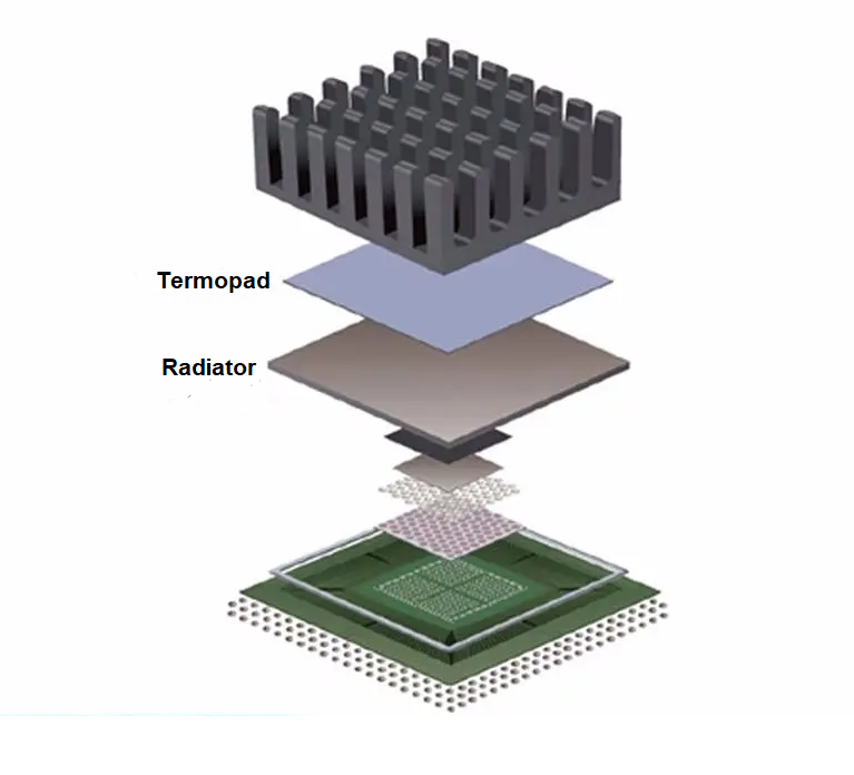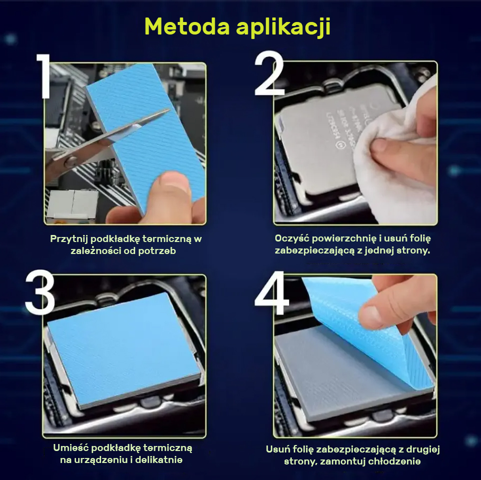 Termopady stosuje się w urządzeniach gdzie intensywna praca procesora czy innego układu scalonego może prowadzić do ich przegrzania i uszkodzenia. Dzięki termopadom, możemy skutecznie obniżyć temperaturę komponentów, co zwiększa ich żywotność oraz poprawia stabilność całego urządzenia.